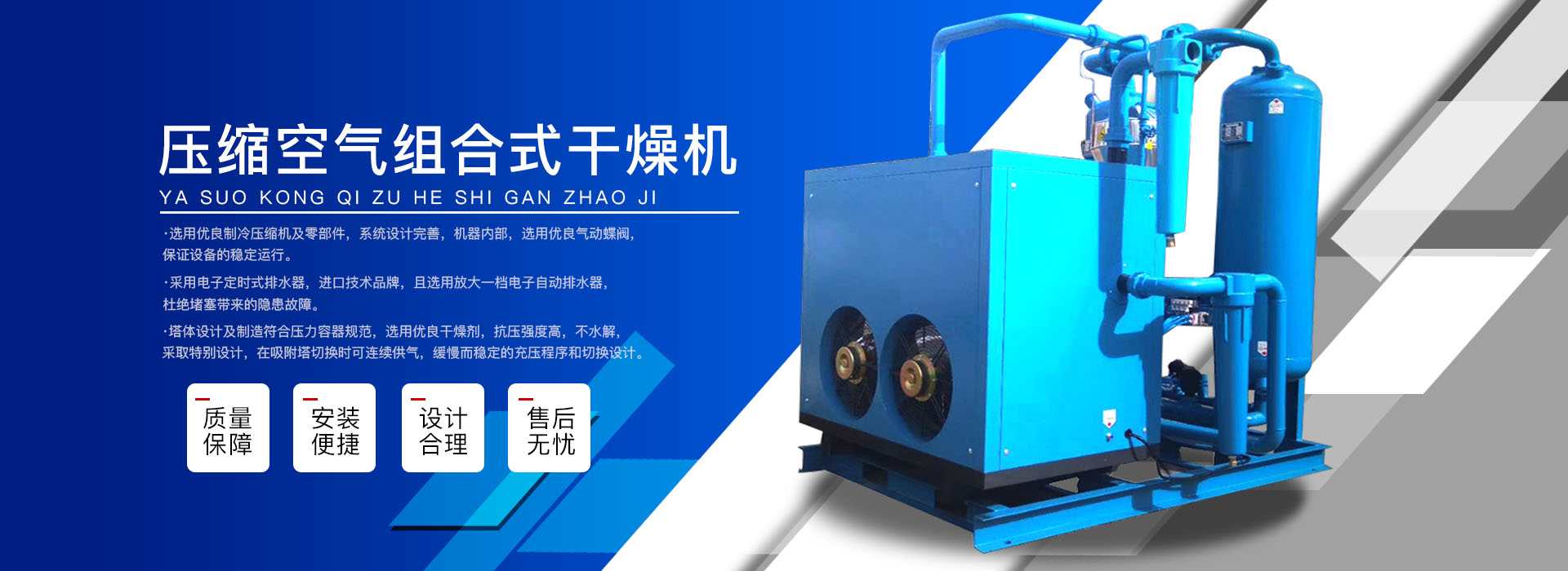 本公司系中國科學院、重鋼院、機電技術(shù)設計院、氣動技術(shù)研究所等相關(guān)專家合作的具有雄厚技術(shù)力量的高科技實體,是一個專業(yè)從事各種氣體干燥凈化及分離純化設備研究開發(fā)及推廣應用的高科技公司。公司積多年對壓縮空氣凈化設備的生產(chǎn)技術(shù)和銷售經(jīng)驗,并在消化吸收國外先進技術(shù)的基礎上,結(jié)合國內(nèi)實際工況特點,研制出適合國內(nèi)外廣大用戶的“滬盛”牌HSD系列壓縮空氣冷凍式干燥機、吸附式干燥機、后部冷卻器、預冷機組、工業(yè)用冷水機組和HF系列壓縮空氣高效精密過濾器(國產(chǎn)濾殼,美國漢克森HANKISON濾芯)等13大系列計300多種規(guī)格產(chǎn)品。并且新研發(fā)出燥式干器, 廣泛應用于電力、冶金、電子、機械、石油、化工、汽車制造、紡織、化纖、輕工、造紙、橡膠、儀表、食品、空氣、卷煙、生物、醫(yī)藥、日化等行業(yè),在國內(nèi)同行業(yè)中一直處于領先地位。